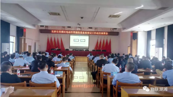 ▲市芙蓉区电动车智能防盗备案登记工作动员部署大会现场